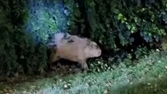 El viernes por la noche, vecinas, vecinos y niños de Doblas se sorprendieron por la presencia de un carpincho que paseaba por la localidad.