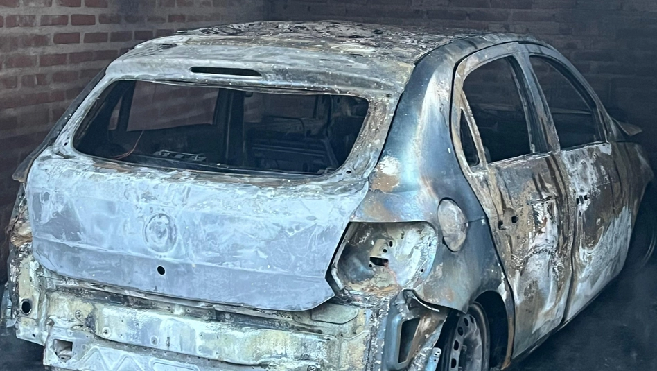 Cuando se dirigió al galpón de chapa, la propietaria vio una imagen desesperante: su auto, un Volkswagen Gol Trend, se estaba prendiendo fuego.