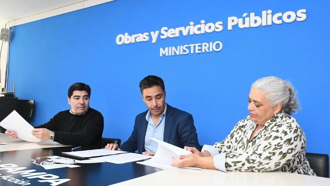 Este miércoles se firmó un convenio enmarcado en el Programa ProPAyS entre el municipio de Anguil y la Administración Provincial del Agua, para la ejecución de los trabajos de construcción de un canal pluvial en hormigón armado en su primera etapa. El acto administrativo estuvo encabezado por el ministro de Obras y Servicios Públicos, Alfredo Intronati, acompañado por el administrador Provincial del Agua, Fabricio González Martín y la intendenta Municipal, María Daniela Fernández.