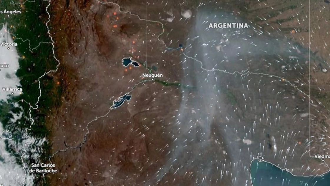 Así lo confirmaron fuentes policiales a LA ARENA. "Estuvimos averiguando por el humo que se ve en La Pampa y por lo que nos informan es humo de los incendios del sur", explicaron y adjuntaron una imagen satelital de las primeras horas de la mañana.
