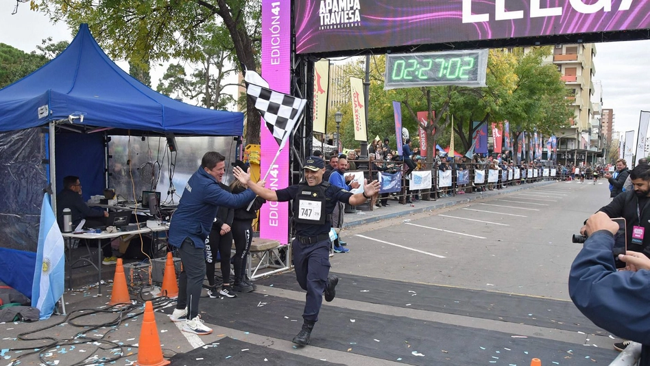 Walter es relacionista público en la Policía de La Pampa y además le apasiona la actividad física. “Entreno y trato de hacerlo no solo por salud física, sino por salud mental también. Creo que es integral la actividad física, los beneficios que te da y venía preparando la media maratón”, indicó. En ese sentido, explicó que al coincidir la maratón con la efeméride nacional, “decidí pedir permiso para hacerlo de uniforme con la dificultad que conlleva. Borseguíes, el correaje, el chaleco, demostrar también que somos muchos los policías que hoy en día nos mantenemos en estado para cuidar a nuestra sociedad, que podemos y tenemos la capacidad física y emocional para para hacerlo”.