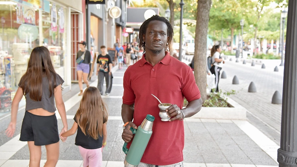 Hace asados y se jacta de ser el mejor cebador de mates de la comarca. Llegado desde su lejana Senegal hace años, disfruta desde entonces de vivir en Santa Rosa. Como si esta fuera su propia tierra.