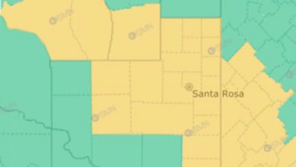 El aviso, emitido a las 17.34 horas, abarca a los departamentos: Chapaleufú - Maracó - Rancul - Realicó - Trenel - Atreucó - Capital - Catriló - Conhelo - Guatraché - Quemú Quemú - Toay - Utracán -Chalileo - Limay Mahuida - Loventué - Caleu Caleu - Hucal