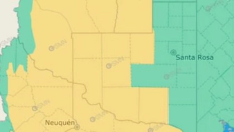 Desde el SMN informaron que los departamentos Chalileo, Limay Mahuida, Loventué, Chical Co, Puelén, Curacó y Lihuel Calel están en alerta amarilla por tormentas en horas de la noche.