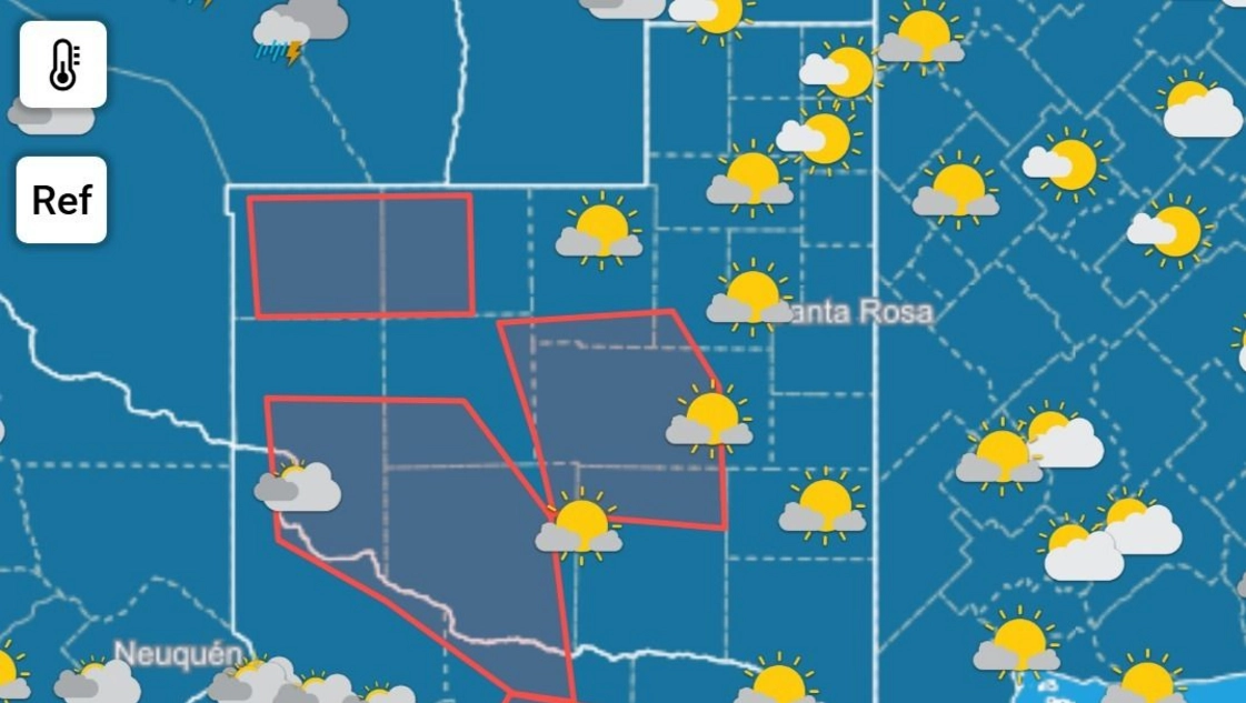 El organismo nacional indicó que se esperan "tormentas fuertes con lluvias intensas, ráfagas y ocasional caída de granizo". Los departamentos pampeanos afectados por este fenómeno son Curacó, Limay Mahuida y Puelén, ubicados al suroeste del territorio provincial.