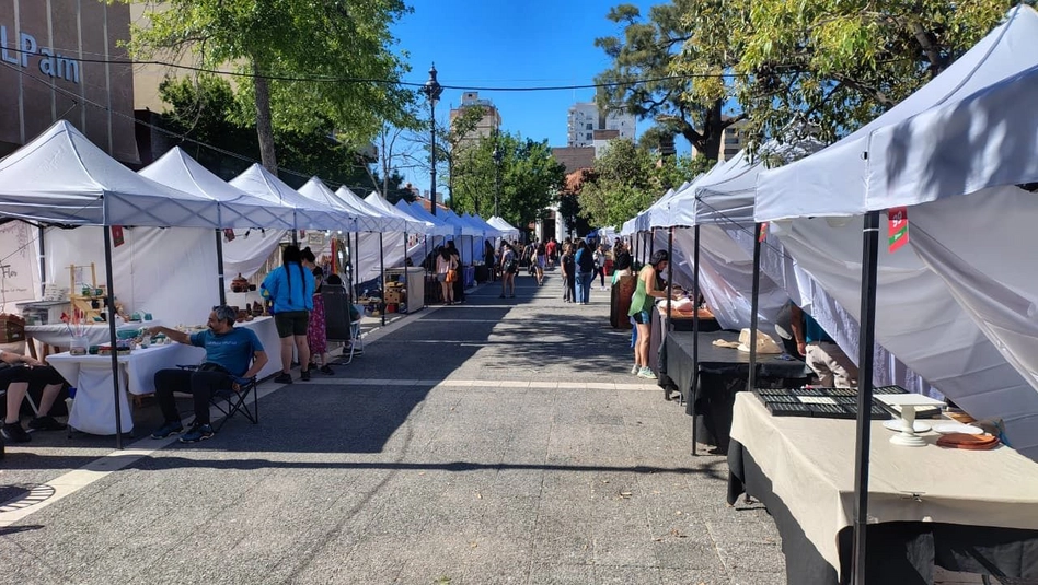 Esta mañana el día comenzó con el desembarco de las artesanas, artesanos y manualistas a la Plaza San Martín. El verde se camufla con el desborde de los gazebos blancos, con el pesebre frente a la Catedral y las mesas que ya están repletas de productos. Entre mate y mate, los feriantes se van acomodando.