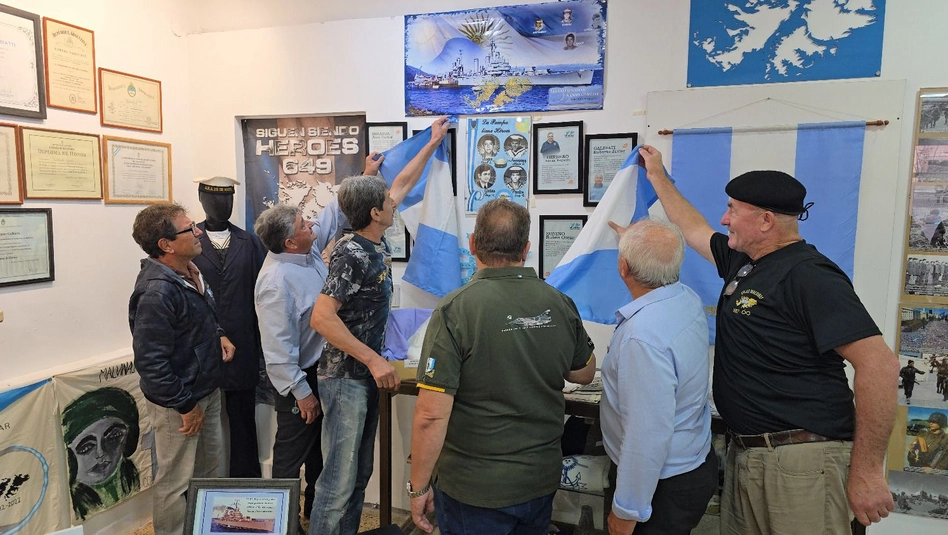 (Eduardo Castex) - En el marco del Día del Veterano y de los Caídos en la Guerra de Malvinas, en Eduardo Castex se reubicó la Sala Héroes de Malvinas en las instalaciones ubicadas sobre la calle Sarmiento, lindante a las instalaciones del Centro Cultural Municipal (CCM). “Ahora hay mayores comodidades para exhibir el material y objetos que tenemos y las cosas que vamos consiguiendo continuamente”, destacó este jueves el ex combatiente castense Hugo Liñeira. Los ex combatientes entregaron a las autoridades municipales un cuadro de los cuatro pampeanos fallecidos en el conflicto bélico: Alberto Amesgaray, Hugo Gatica, Daniel Lagos y Jorge Pardou.