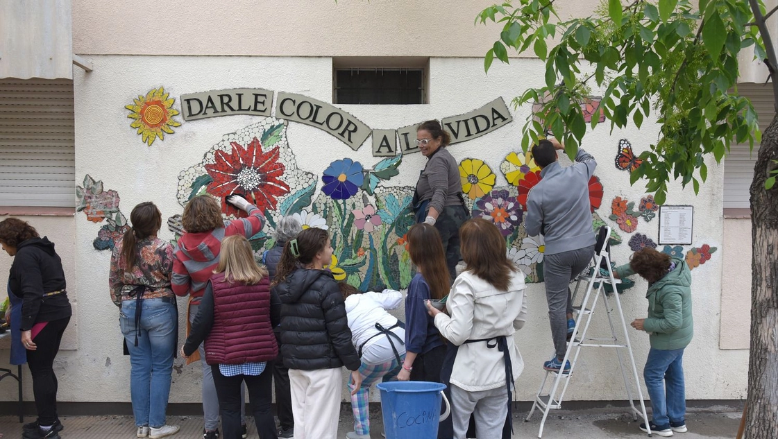 Ensamblaron mural de mosaicos en el Hogar de Ancianos: "Darle color a la vida"