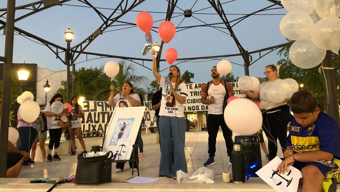 Ayer por la tarde, la familia de la joven realizó una sentada en la plaza San Martín. Llevaron globos blancos que soltaron al cielo en memoria de Lía. Previo a ello, Alejandra leyó una carta para expresar cuánto la extrañan.
