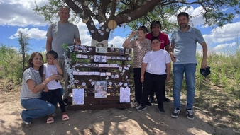 A un año de la desaparición de César Calluqueo, la familia se reunió para recordarlo y mantener viva su búsqueda. El emotivo encuentro tuvo lugar en la calle Juan Pablo II, cerca de la laguna Quetré Huitrú de General Acha, donde los allegados levantaron un espacio en su memoria, con la esperanza de que pronto haya respuestas. Participaron su esposa, sus hijos César, Angela, Bruno y José Luis, además de nietos y demás familiares, quienes compartieron un momento de recuerdo y reflexión.