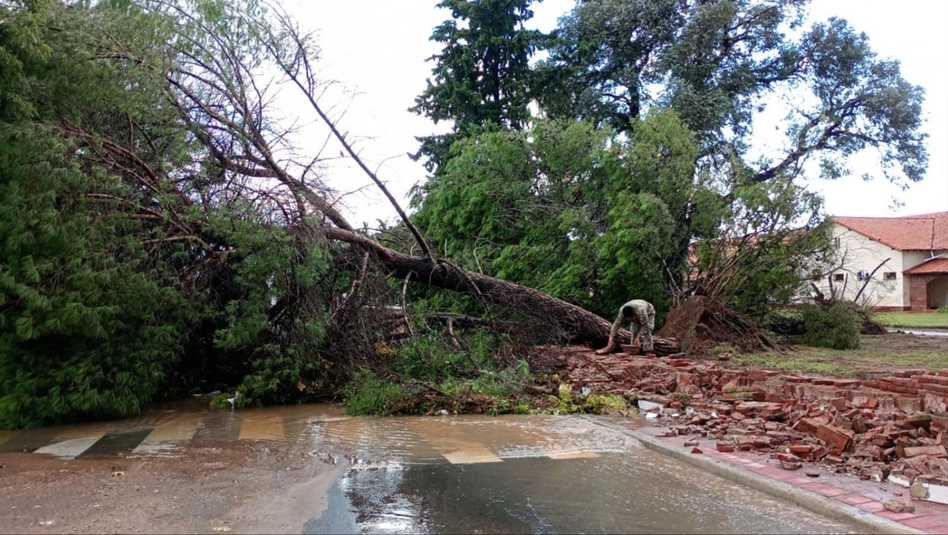 La ciudad de Santa Rosa y zonas cercanas se vieron afectadas por un intenso temporal esta tarde, con importantes precipitaciones, fuertes ráfagas de viento y granizo. La tormenta dejó numerosos destrozos: árboles y postes de luz caídos, cortes de luz, y voladuras de chapas.
