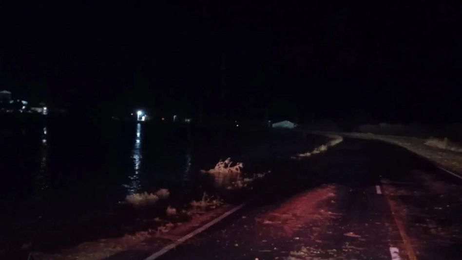 Hubo por varios minutos una situación complicada en la ruta provincial 1, entre la localidad y la ruta nacional 35 donde los Bomberos solicitaron transitar con precaución por abundante agua sobre la cinta asfáltica.