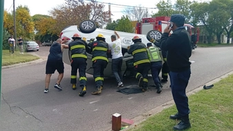Un hombre se descompensó, perdió el control de su taxi, chocó contra una columna y terminó volcando en la esquina de 19 y 104 de General Pico.