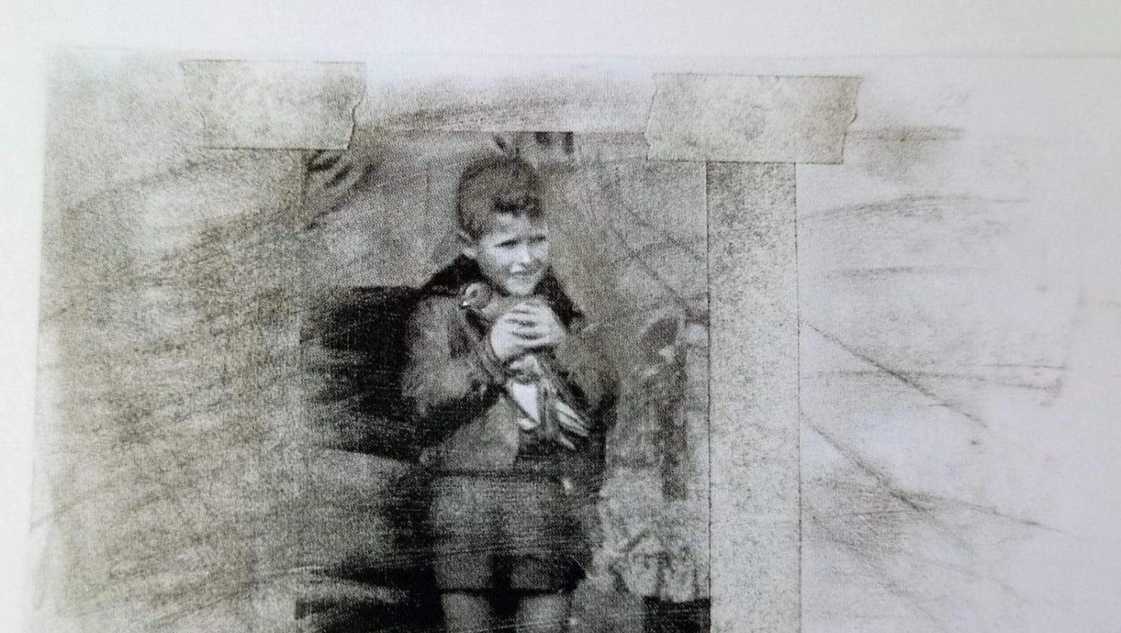 En la muestra se expone un “fotolibro” en base a intervención de fotos dispersas de su tio Sergio y con poemas alegóricos.