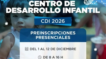 La Municipalidad de Santa Rosa informa que, del 1 al 12 de diciembre, se realizarán las preinscripciones para los Centros de Desarrollo Infantil (CDI) correspondientes al ciclo 2026, destinados a infancias de entre 45 días y 2 años.