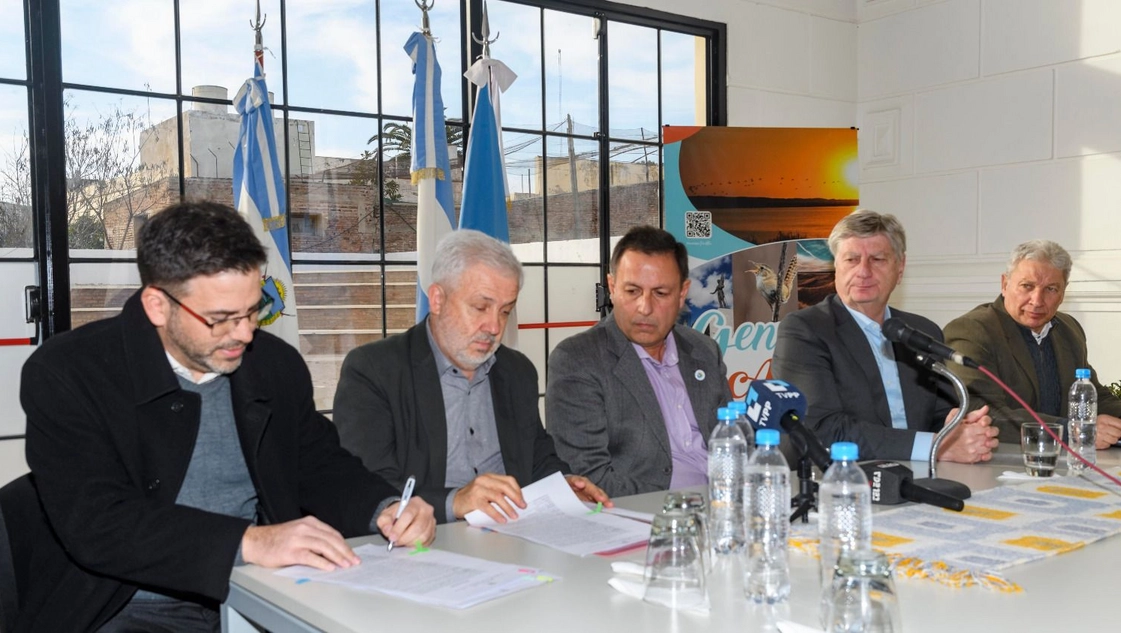 La firma tuvo lugar en el edificio de Centro Histórico Cultural “Ex Sociedad Española” y fue encabezado por el gobernador, Sergio Ziliotto, junto al Intendente Abel Sabrots, el ministro de Obras Públicas, Julio Rojo; el titular de Asuntos Municipales, Rogelio Schanton, y el presidente del IPAV, Jorge Lezcano, entre otras autoridades. Por la firma Ribeiro SRL, a cargo de la obra, firmó Pablo Ribeiro, uno de sus titulares.