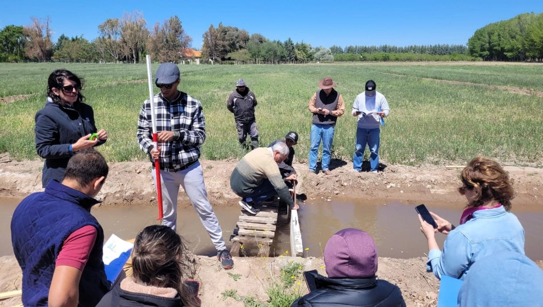 Durante la jornada se desarrollaron temas como la gestión del agua para riego, los requerimientos de los cultivos, la evaluación de suelos, la medición de caudales y lámina de riego, herramientas claves para optimizar el uso del agua. ??En los sistemas bajo riego, el aforo cumple un rol esencial para conocer los caudales que circulan en canales permitiendo ajustar la distribución del agua a través de mediciones periódicas y el uso de metodologías sencillas.