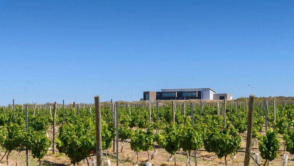 La Bodega fue diseñada con criterios productivos y turísticos. Ubicada sobre una barda en la Ruta Provincial 34, con vistas al lago y la represa, permitirá que visitantes recorran sus instalaciones incluso en plena vendimia. Un sistema de pasarelas vidriadas posibilitará observar la actividad sin interferir en el proceso, al estilo de las grandes bodegas de Mendoza y el sur del país.