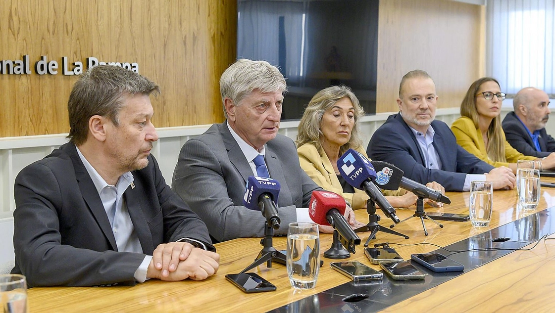 Durante una conferencia de prensa que encabezó en el Salón del Consejo Superior de la UNLPam, el gobernador anunció “una buena nueva que nos acerca un poco más a la realidad tan deseada de que el río vuelva a correr por nuestro territorio” y advirtió que “La Pampa no abandona la lucha por sus ríos: seguiremos insistiendo en todos los estamentos que tienen competencia sobre la materia, sumando pruebas y buscando entendimientos".