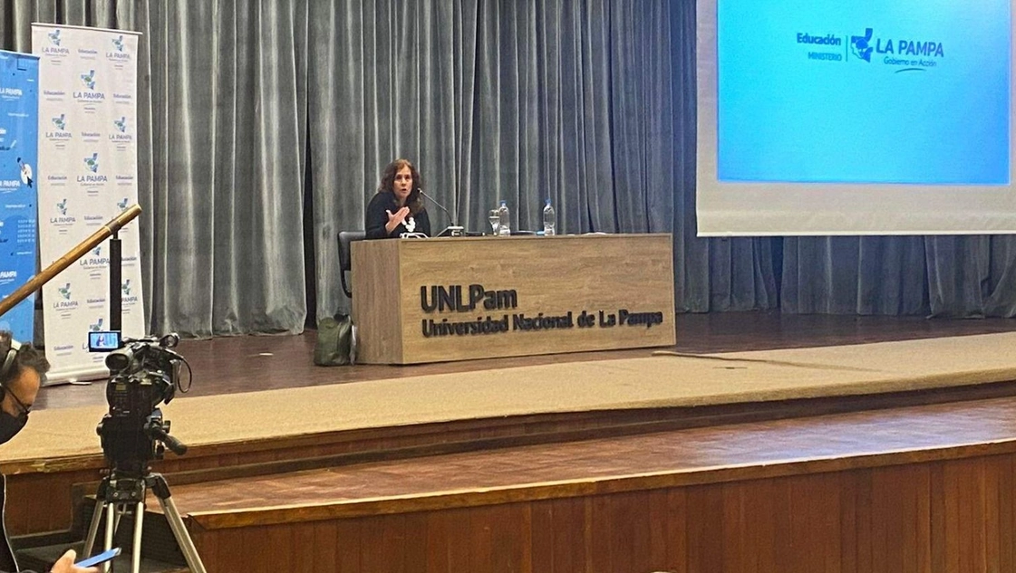 Señaló que en el Aula Magna se analizaron "algunas situaciones que se presentan en las escuelas en la vida cotidiana y cómo podemos hacer para reconstruir trama o tejido institucional que permita que las y los estudiantes se sientan amparados ella". En ese marco, indicó que "la escuela es una institución que funciona como refugio emocional" y toma una relevancia excepcional luego de la pandemia, por ello se busca "habilitar espacios de tramitación, de dolor social, de poner en valor esos sentimientos de pérdida, duelo, de sinsentido que atraviesan los estudiantes".