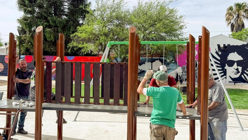 "La obra próxima a concluirse se completa con los tachos para la recolección de residuos, bancos, mesas y sillas de hormigón para las mañanas y las tardes de mate. Por último, se está concluyendo un imponente mural que le da un toque especial a la plaza, porque recorre la vida del artista Gustavo Cerati y lo relaciona con lugares emblemáticos de la capital pampeana", concluyeron.
