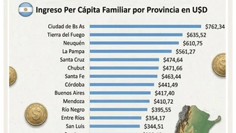 El informe identificó a La Rioja como la provincia con menor ingreso per cápita familiar del país, con u$s 247,20 mensuales, seguida por Chaco con u$s 255,74 y Formosa con u$s 266,65. En términos diarios, esto implica que en La Rioja se vive con apenas u$s 8,24 por día, mientras que en Chaco y Formosa los ingresos alcanzan los u$s 8,52 y u$s 8,89, respectivamente.