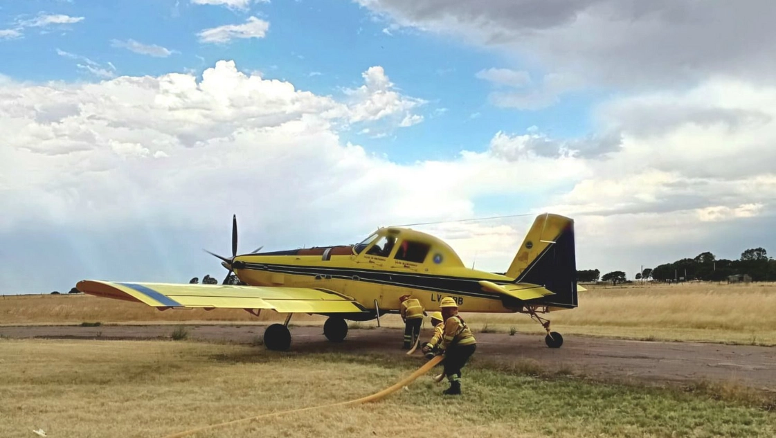 La aeronave comenzó sus tareas de la pista del aeroclub, donde es abastecida de agua por el camión tanque de la Municipalidad local, junto a Bomberos destacados en el lugar para colaborar en la recarga. Este medio aéreo se suma al avión observador con base en Santa Rosa, que permanece asignado de manera permanente a la Provincia y que viene trabajando en la zona desde el inicio del siniestro, brindando información clave para la toma de decisiones operativas y la planificación de los abordajes al fuego.