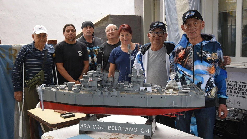 El héroe de Malvinas y sobreviviente del ARA General Belgrano, Gustavo Díaz, presentó en su casa una maqueta a escala del crucero. Díaz le dijo a LA ARENA que “yo toda la vida di charlas, hasta hace cinco años que me lo prohibió la psicóloga, porque lloraba mucho. Me hacía muy mal. Y hubo un chico que en el año 91 estuvo en una de esas charlas, y después lo conocí en el 2018 y me dijo yo te voy a regalar una maqueta”.