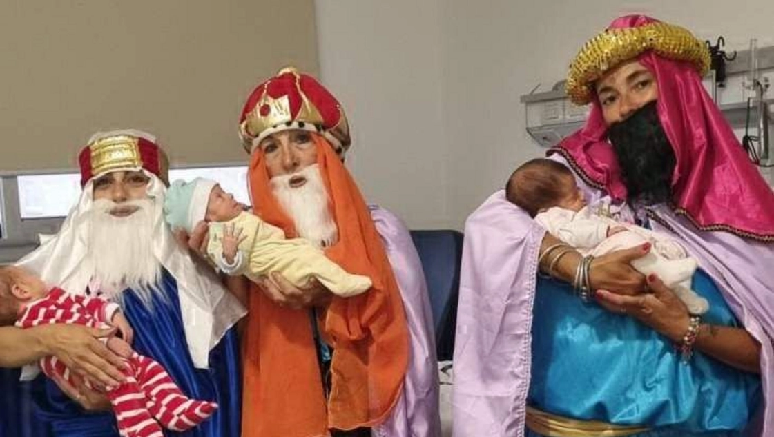 Los Reyes repartieron regalos en la guardia y los pasillos. Los bebés Gaetano Gael, Galo Giuliano y Gala Gianela Gallego -los primeros trillizos en nacer en el Favaloro- también recibieron sus obsequios.