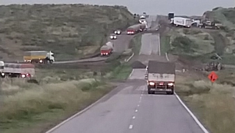 En ese sector hay un desvío construido, donde existe una lomada, y anoche con una llovizna producida en la zona, hizo que los camiones patinaran y hasta uno quedó cruzado sin poder moverse del lugar.