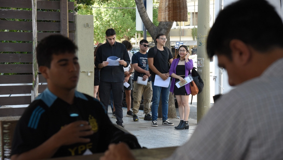 La larga fila de personas que por momentos daba la vuelta por la calle Urquiza es un reflejo de la necesidad de trabajo que la crisis actual genera en los más jóvenes.