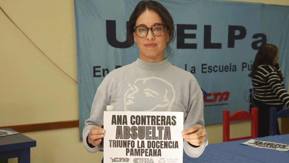 Contreras encabezó esta mañana en la sede del gremio Utelpa, acompañada por miembros del propio sindicato, una conferencia de prensa en lo que fue la primera aparición pública de la docente que estuvo en el centro de todas las miradas al ser denunciada y luego condenada a pagar una multa aunque posteriormente quedó absuelta.