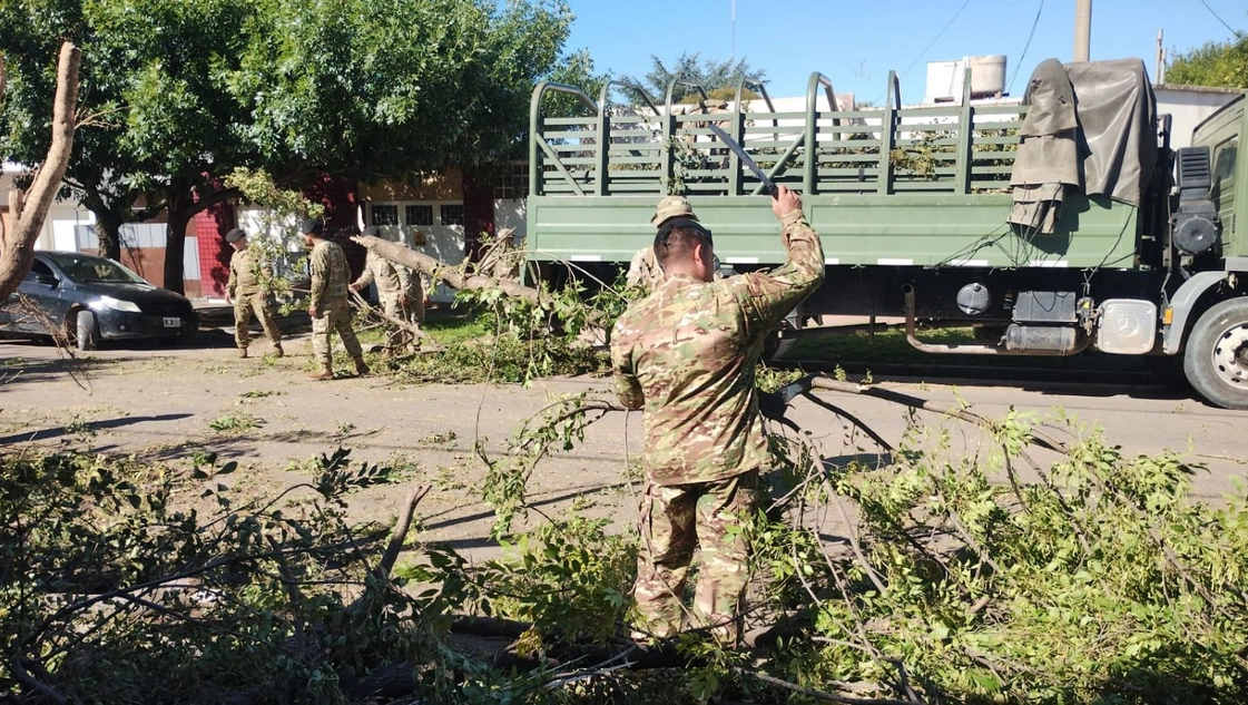 El trabajo desarrollado por el Ejército se suma al efectuado por numerosas cuadrillas del municipio y la CPE entre otros sectores que trabajan para despejar las zonas y asistir a las personas que más lo necesitan a raíz de las consecuencias del temporal.