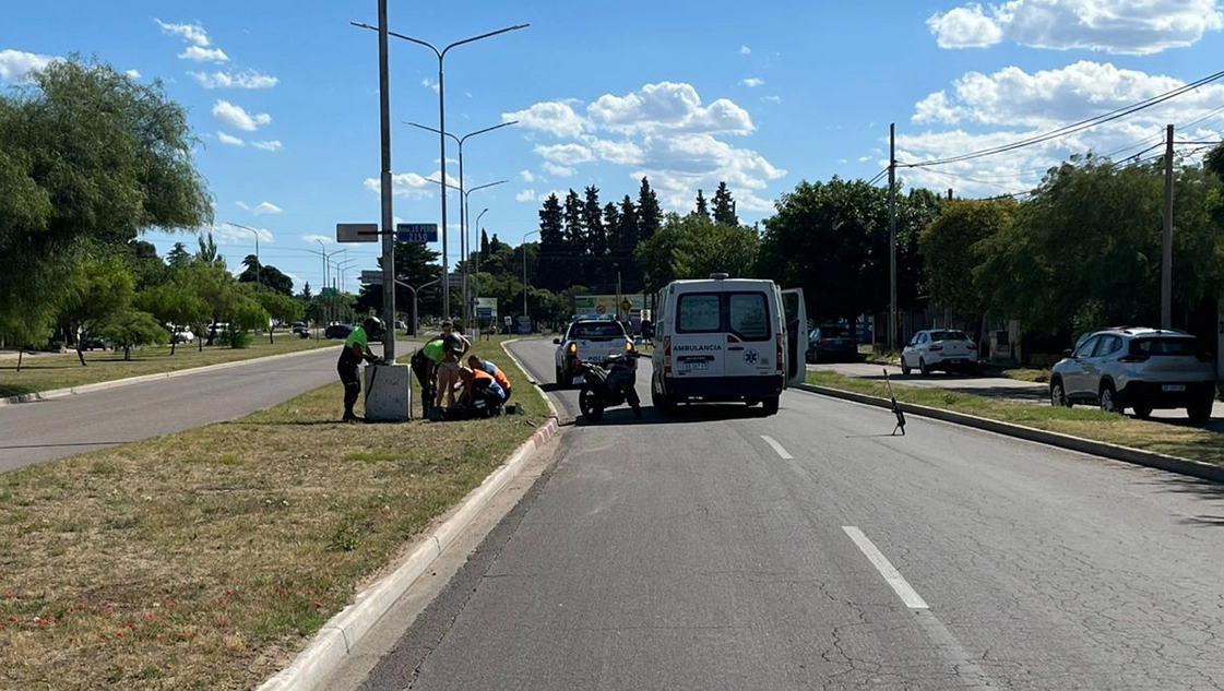 Motociclista perdió el control de la moto y se accidentó en la Perón