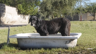Por eso, ver a las 5 de la tarde al animalito en una bañera con agua ubicada en una esquina de Gobernador Duval y Maipú (a una cuadra del Club Argentino), en absoluta soledad en un inmenso baldío, no podía dejar de llamar la atención.