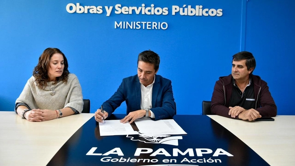 El ministro de Obras y Servicios Públicos, Alfredo Intronati, en representación del Gobierno provincial, firmó el contrato para la obra de reparación de la cubierta del Pabellón Uno del Hospital Lucio Molas, junto al representante de la empresa constructora Materiales Butaló.