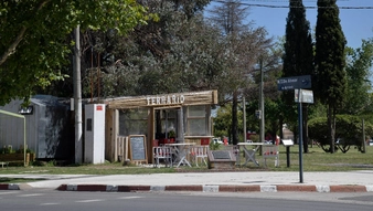 En esa esquina se abrió hace un tiempo un carrito que en realidad funciona como un bar al aire libre. Antes se vendían plantas y terrarios y ahora funciona como un bar con barra, sillas, mesas, y dee jays que se encargan de la música hasta la madrugada.