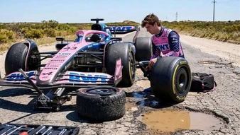Realizan un original meme de Colapinto cambiando una rueda en la ruta 151