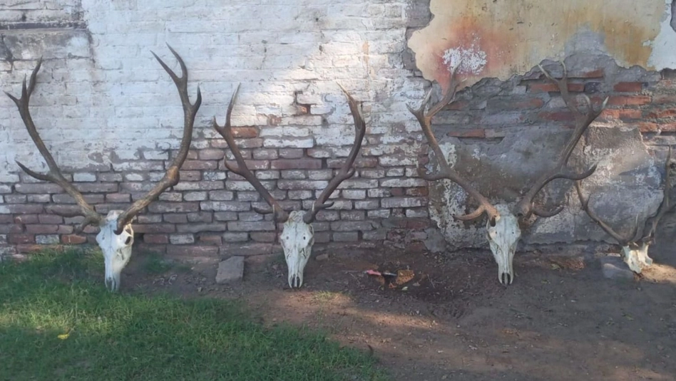 Uno de los allanamientos tuvo lugar en una vivienda de calle Emilio Lernoud, donde los efectivos secuestraron una cabeza de ciervo de ocho puntas, una cabeza de antílope y un teléfono celular.