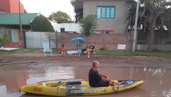 Lo que hicieron fue sacar sus reposeras, sombrillas y hasta un kayak para "disfrutar" de una tarde de sol sobre las calles Rubio Sur y Gentile.
