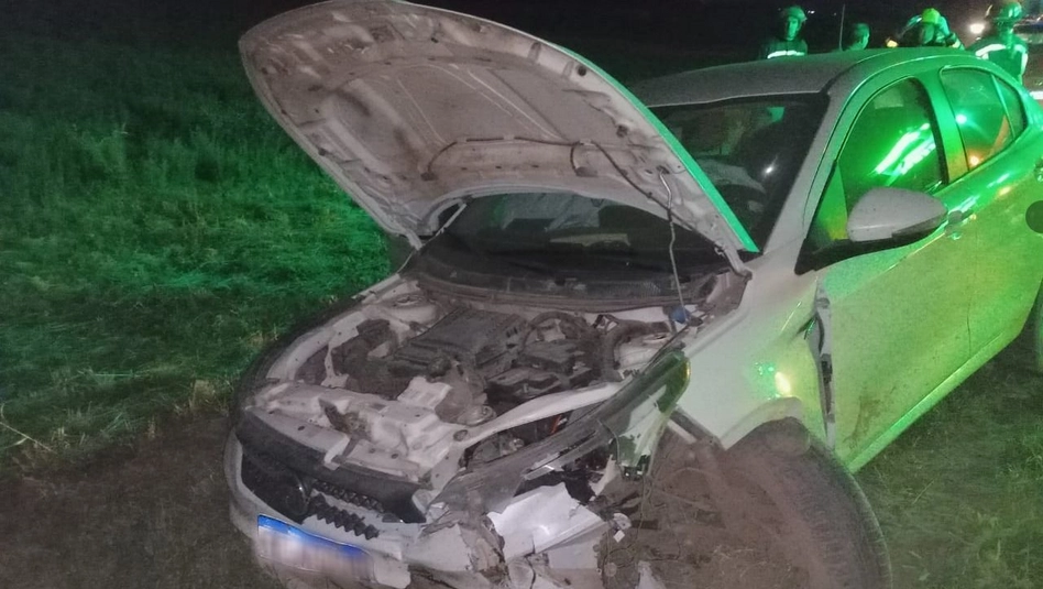 En un momento se le cruzaron tres perros y si bien intentó esquivarlo colisionó contra un Dogo cruzado, que pertenece al dueño de una estancia cercana, quien se acercó hasta el lugar. El auto luego de impactar con el perro se fue hacia la banquina oeste y el frente quedó destrozado. El animal murió producto del fuerte golpe.