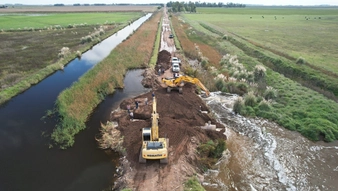 Las tareas se están desarrollando a unos siete kilómetros al sur de la ruta, en el límite con la provincia bonaerense. La imagen que ilustra este artículo fue tomada de sur a norte, haciendo foco en el "lado pampeano" del canal.