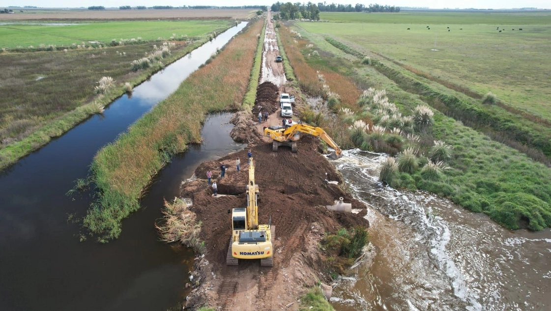 El Gobierno provincial, en conjunto con provincia de Buenos Aires, se encuentra trabajando en una obra de ampliación del desagüe para prevenir inundaciones en la zona del Río V. Para ello, colocaron dos nuevos caños.
