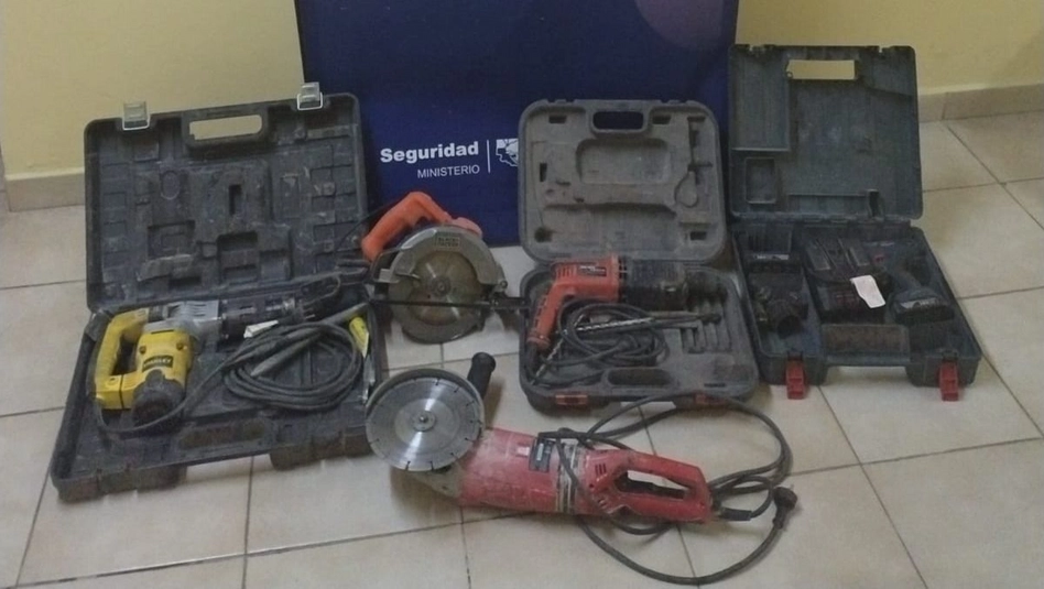 Los policías además retuvieron un celular marca Samsung modelo J4 color rosa (cuyo propietario no apareció), una amoladora marca Einhell color rojo y negro, una sierra circular marca Black y Decker color naranja y negro, un martillo demoledor marca Stanley color amarillo y negro, un taladro inalámbrico marca Bosch color azul y un rotomartillo marca Black y Decker todas propiedad de un hombre que reside en el pasaje Sarratea.