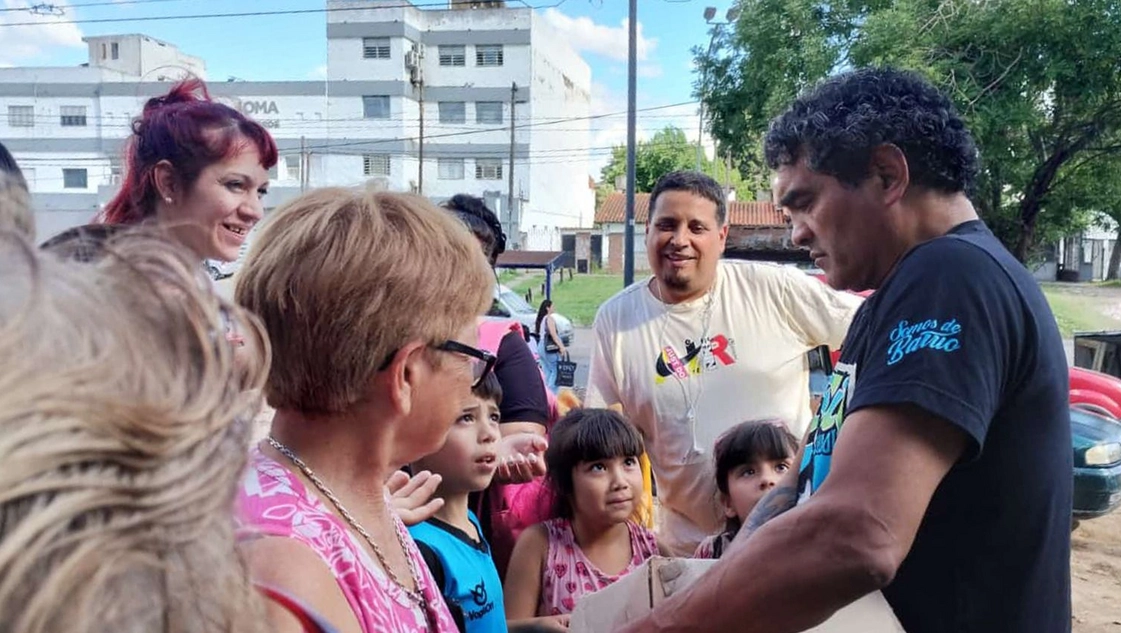 El campeón mundial siempre se acerca los comedores y merenderos para que la gente pueda acceder a un rico plato de comida. “Roña” Castro recibe donaciones de distintas empresas y distribuye paquetes de arroz, fideos, polenta o tomate.