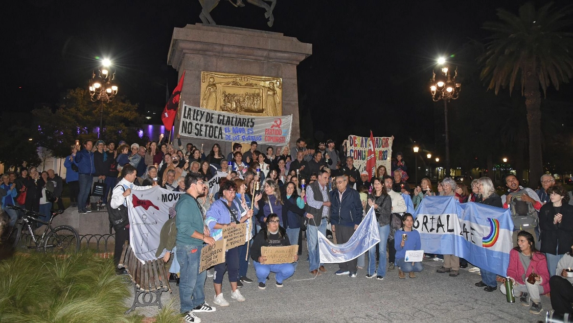 La jornada se realizó esta tarde desde las 19 en la plaza San Martín. Los vecinos y vecinas llegaron con distintos carteles expresando su preocupación por la reforma de la normativa. “El agua es del pueblo”; “El río Colorado está en peligro”; “La Ley de Glaciares no se toca, el agua vale más que todo”, fueron algunas de la leyendas que escribieron en las pancartas.