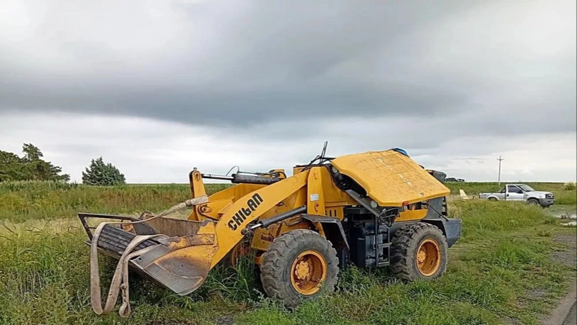 Se cayó una pala cargadora de un camión sobre la Ruta 35