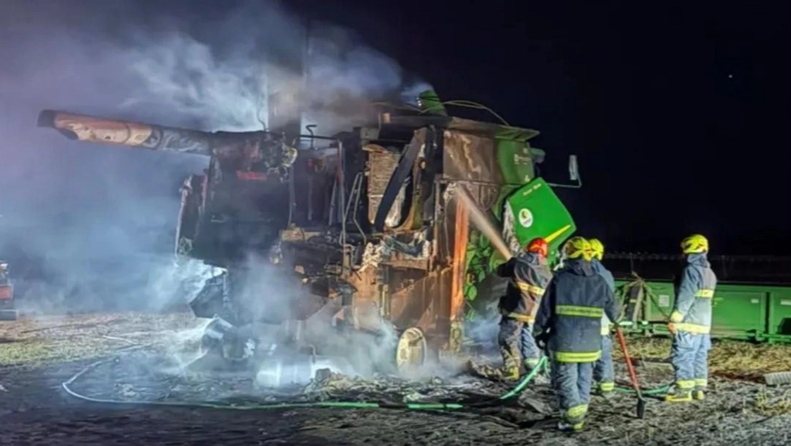 Se incendió una cosechadora en un predio rural de Quemú Quemú