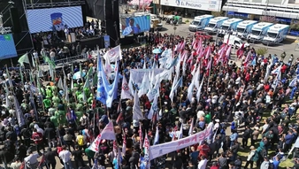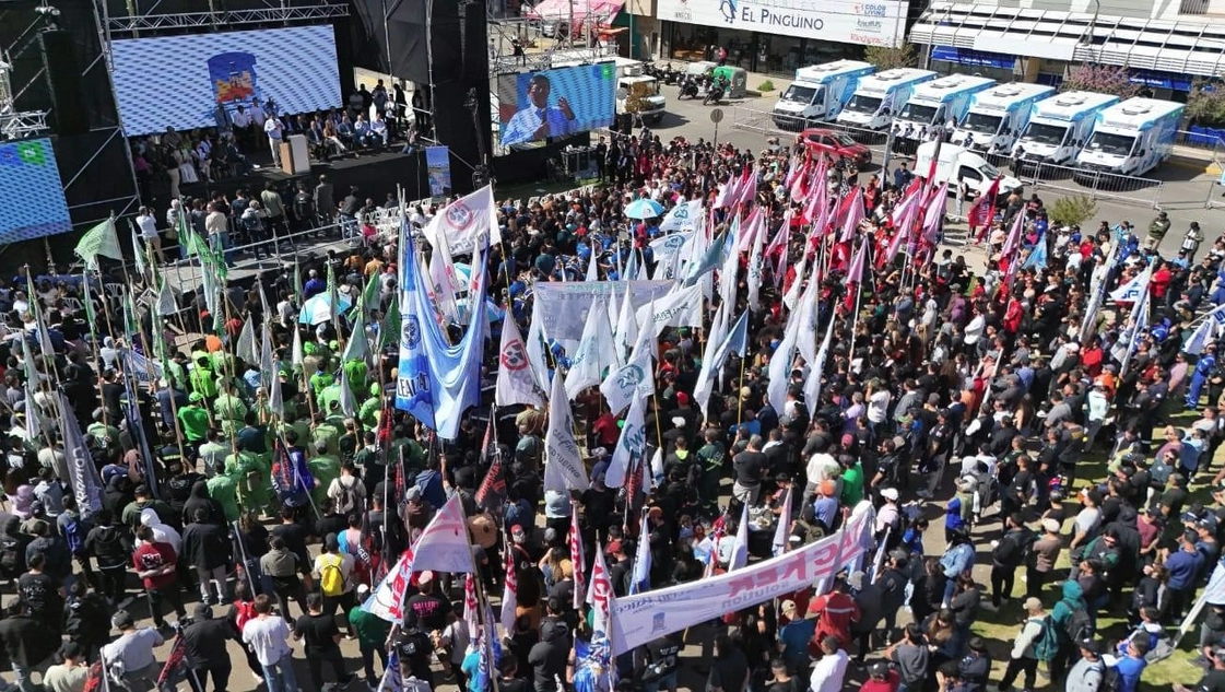 Luego de esa primera instancia, las autoridades del sindicato se movilizaron hacia el Parque Central donde encabezaron un acto que contó con la presencia de miles de afiliados que coparon desde el frente del Museo Nacional de Bellas Artes hasta la esquina de Mitre y Tierra del Fuego, donde se encontraba el escenario.
