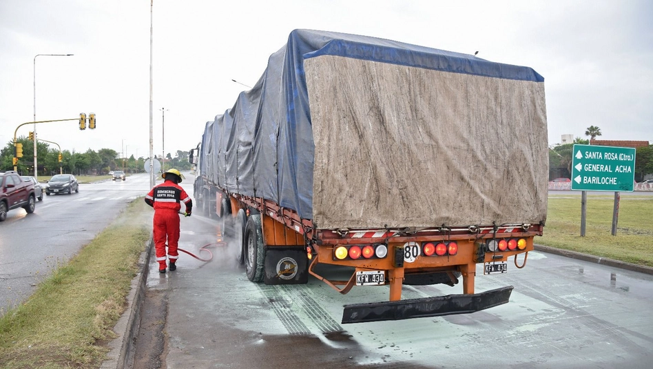 Un camión que transportaba arena para Vaca Muerta sufrió un desperfecto en el ingreso de Santa Rosa, lo que derivó en un principio de incendio. El foco rápidamente fue sofocado por el conductor y afortunadamente no hubo que lamentar heridos.
